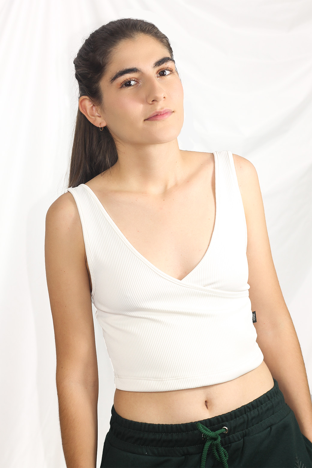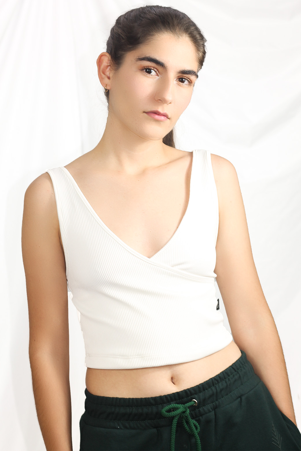 ¿Clima soleado?, ¡Nuestro top cruzado es perfecto para combinar tu outfit de verano!, una prenda fresca y versátil que puedes combinar con pantalones, faldas o shorts; elaborado con rib de alta calidad con corte delantero en “v” ¡hará que te sientas cómoda y a la moda!