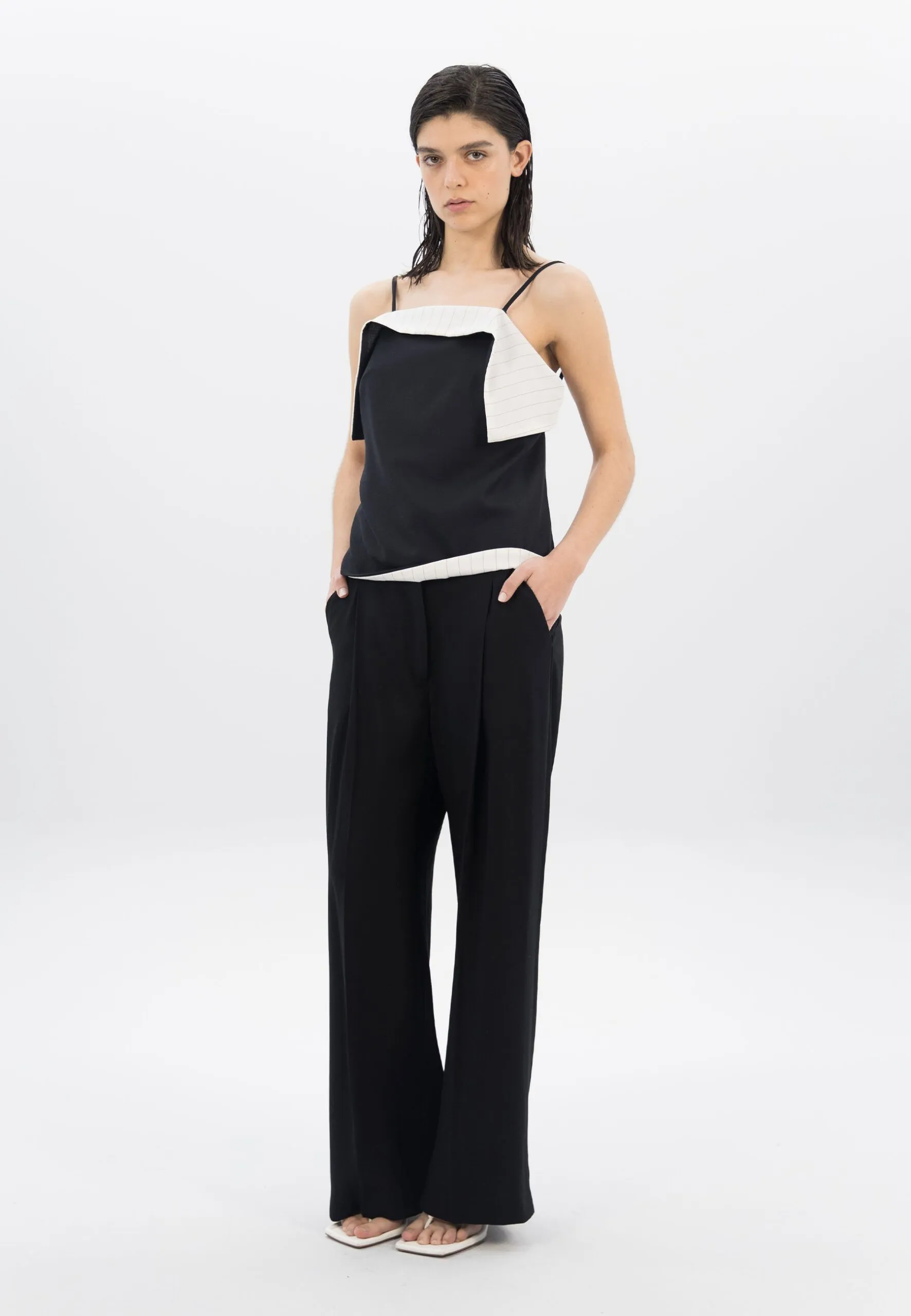 Top en color negro con doble tejido y anudado en la espalda. Esta prenda es multi-talla.