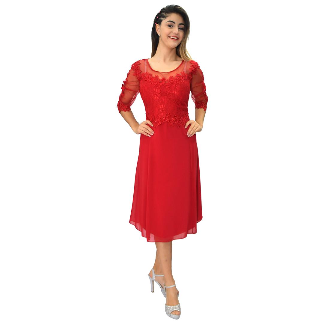 Vestido corto rojo, manga 3/4