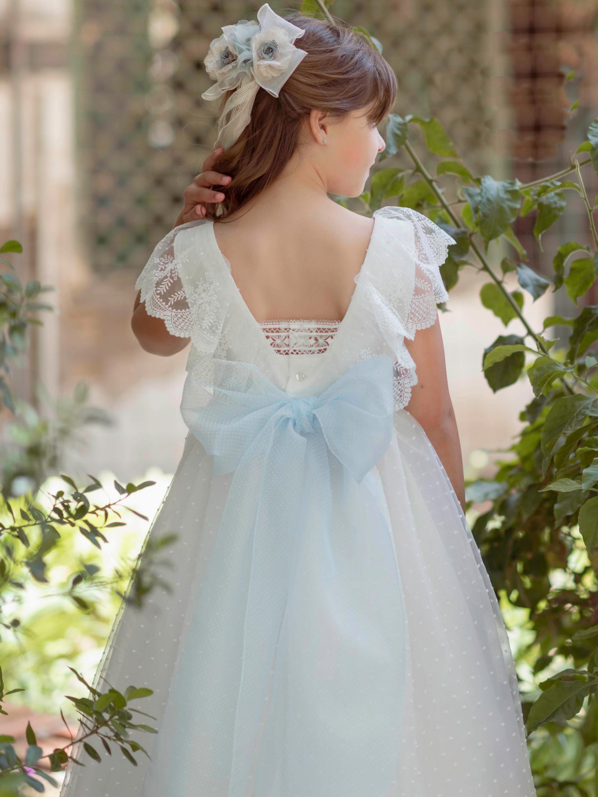 Vestido de comunión de plumeti y mangas voladas