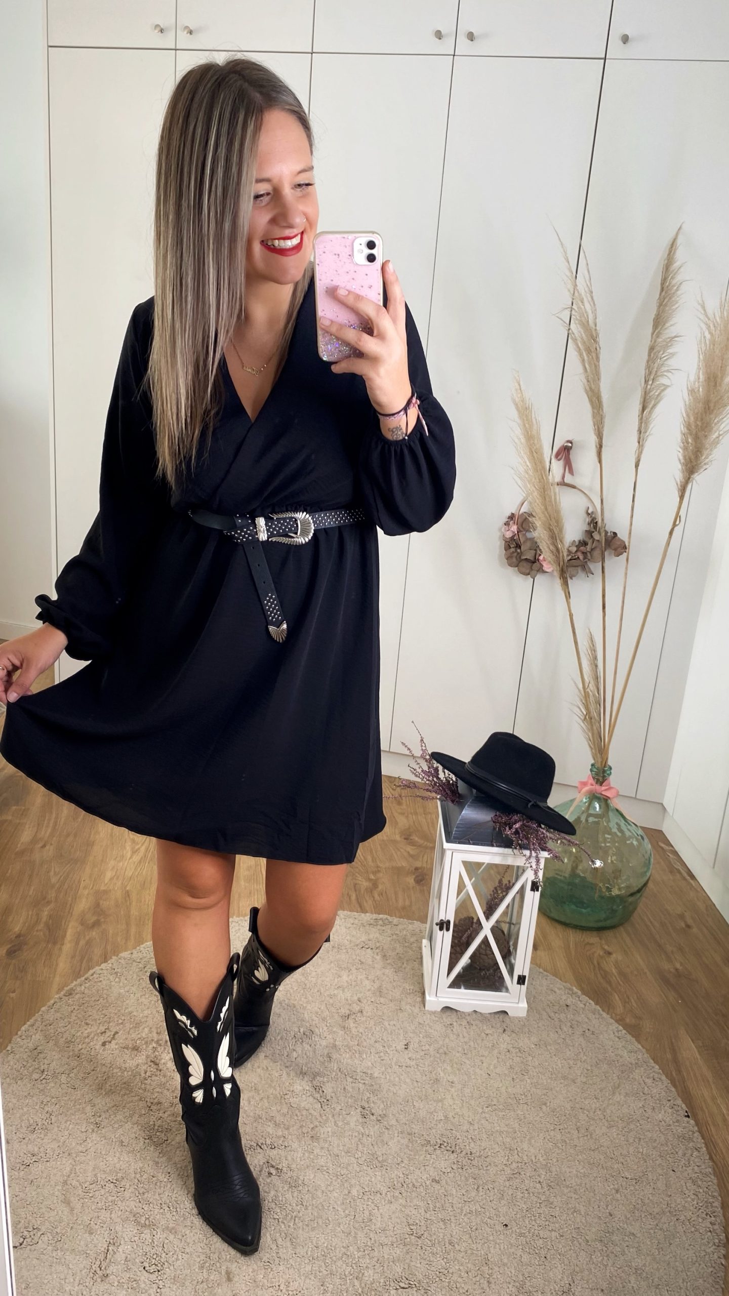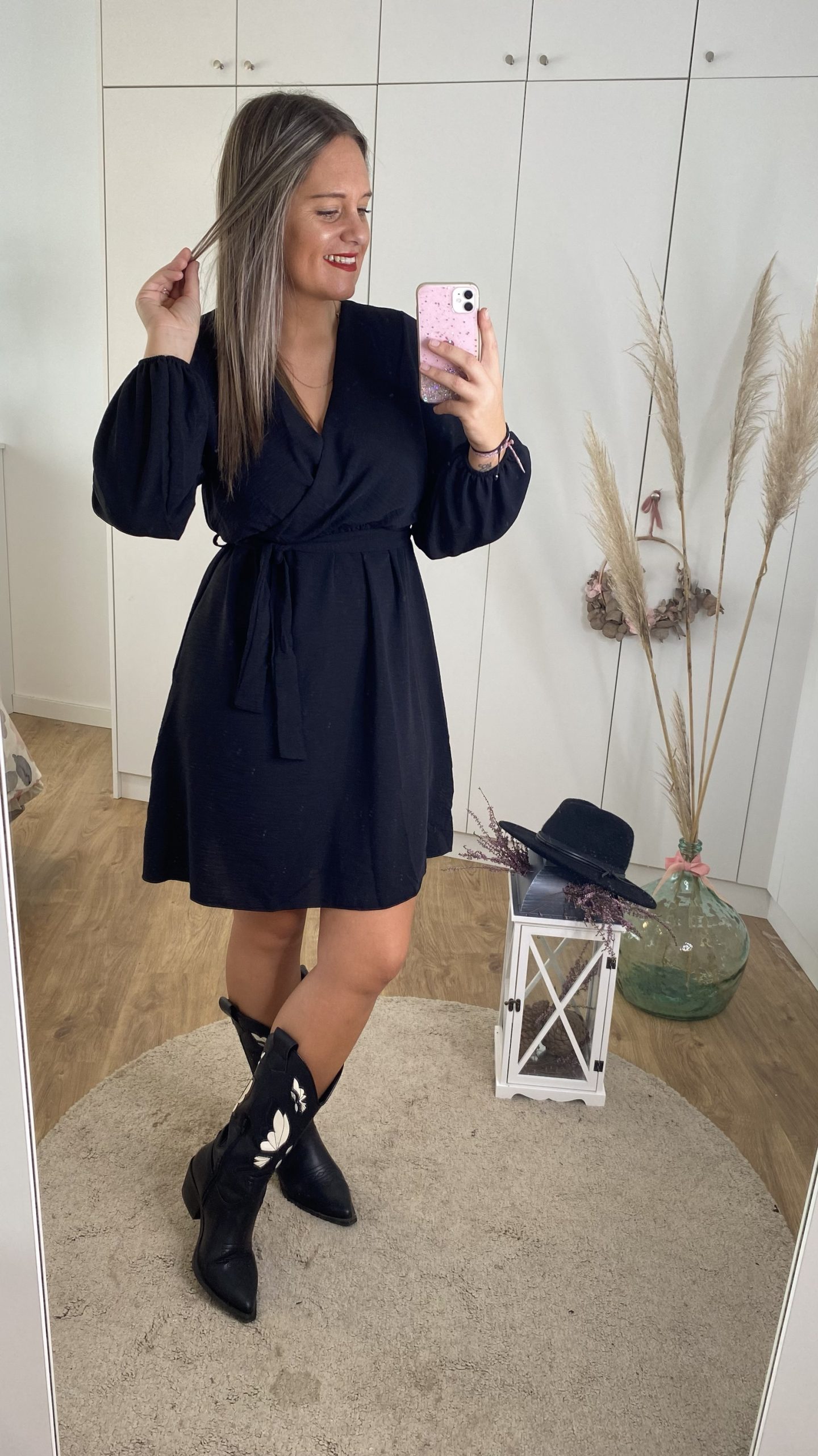 Vestido de escote cruzado,con cinturondel mismo tejido