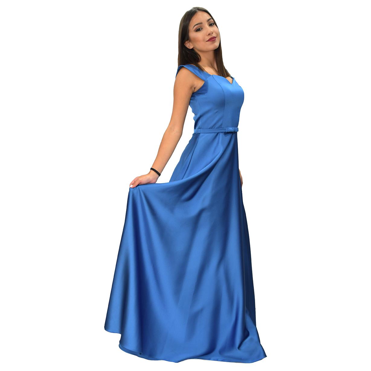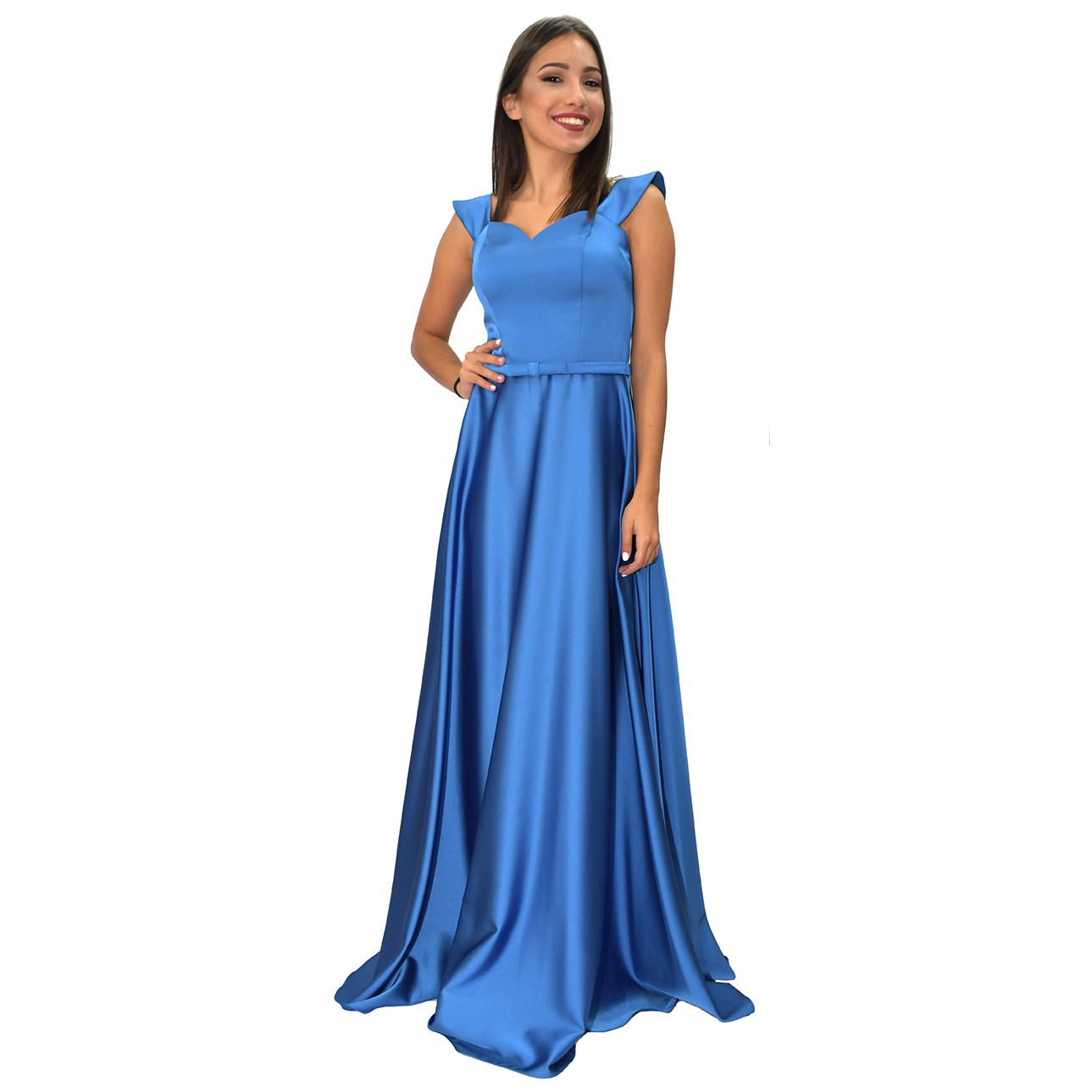 Vestido largo azul satén