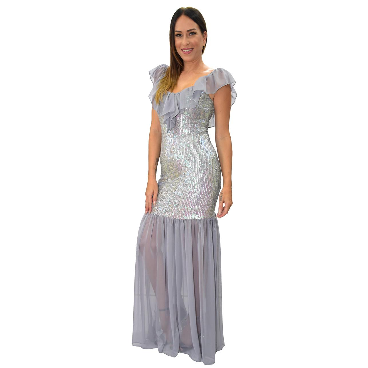 Vestido largo gris garza